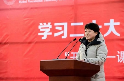学校党委副书记付俊薇为同学们上了一堂题为“向新希望而行 向新辉煌迈进”的国旗下思政课。付俊薇说,刚刚召开的党的二十大具有伟大的战略意义和深远影响,同学们要深刻领会其重要内涵。近年来,国家对于职业教育高质量发展做出了一系列重大部署,学校也在改革发展中取得了一系列标志性成果,同学们要勇立时代潮头,在新的一年锤炼品德修为,涵养家国情怀,增强专业本领,勇担时代重任,用奋斗的青春打造美好未来。