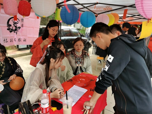 中秋节当天,学校以“情聚工院•共度佳节”为主题举办了中秋游园会,活动场地分为传统民俗体验区、诗词接力区、团圆互动区、拍照留念区、运动传情区等几个区域,设置了猜灯谜、晒团圆 、穿汉服、记歌词、送祝福、呼啦圈、你画我猜、三行情书等游戏环节,同学们热情参与,玩的不亦乐乎。