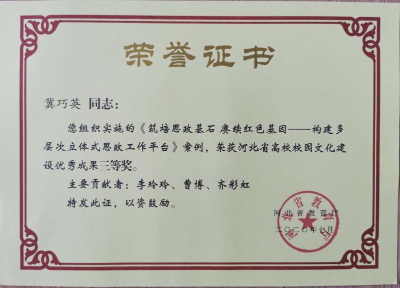 【管理育人】学院在第十八届河北省高校思想政治工作成果评选活动中喜获佳绩