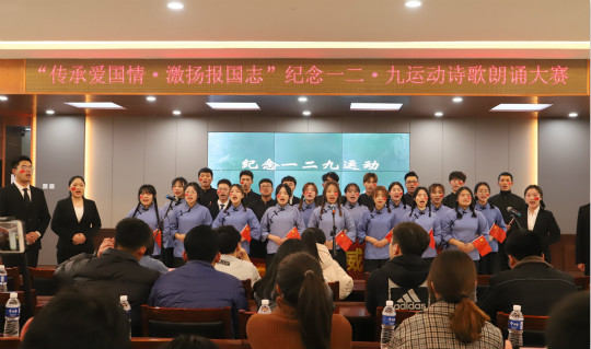 为纪念“一二·九”爱国运动84周年,将“一二·九”精神薪火相传,激励工院学子的爱国情怀,使青年学生牢记责任和使命,12月9日晚,我院在五楼报告厅举办了以“传承爱国情·激扬报国志”为主题的诗歌朗诵比赛,本次比赛由院团委李桉冰老师、智能制造学院邱京老师、工商管理系董力强老师担任评委。