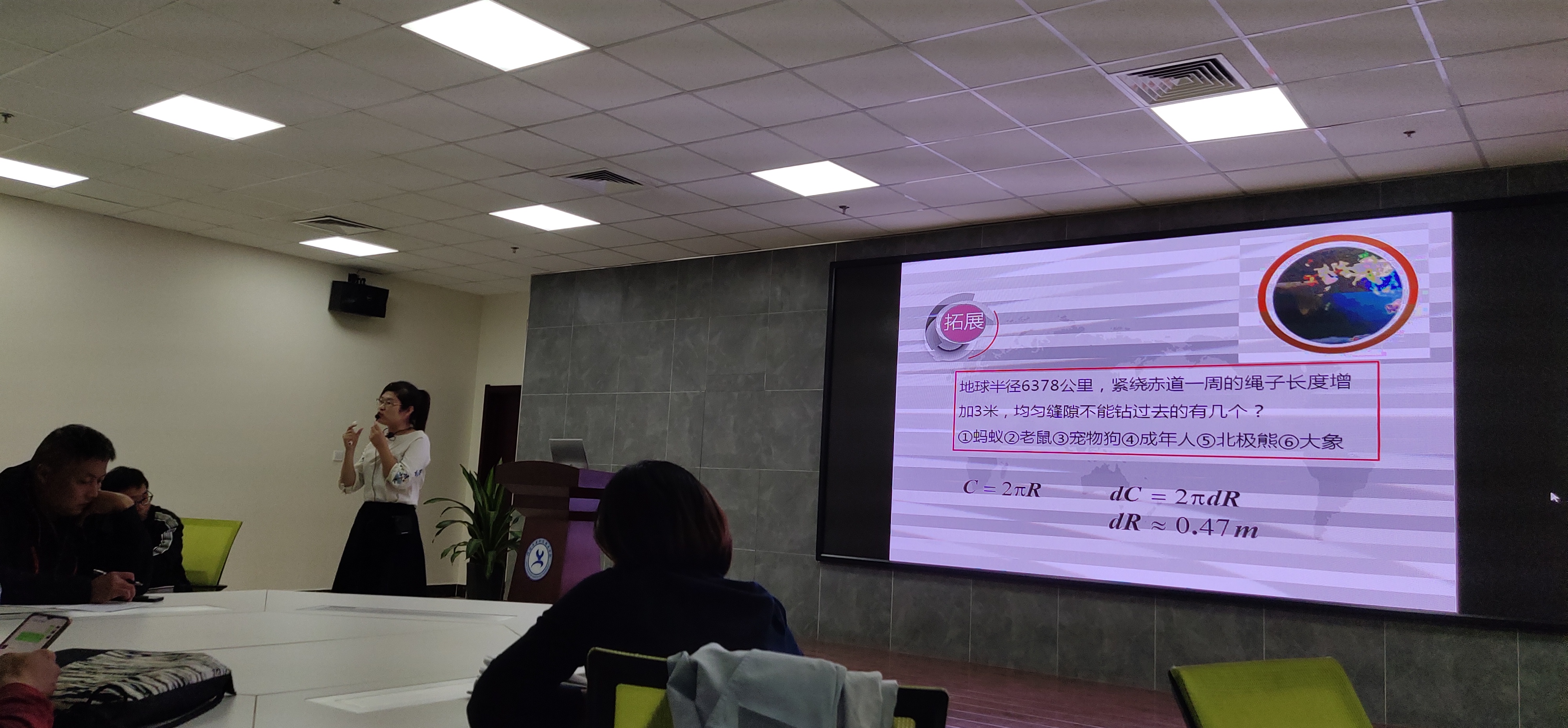 首先,刘主任向全体老师指出开展“课程思政”的重要意义,并对我部课程思政的开展情况进行了说明。随后,李英芳老师进行了课程思政示范课展示,并进行了教学设计的讲解,李老师把数学与专业教育相结合,有机融入社会主义核心价值观,课堂展示生动有趣,效果良好。