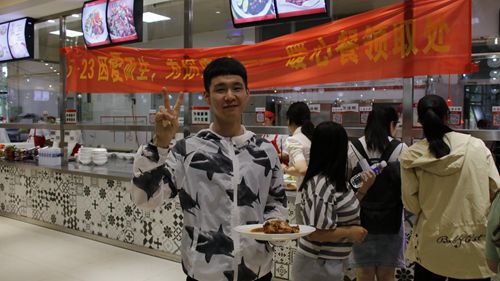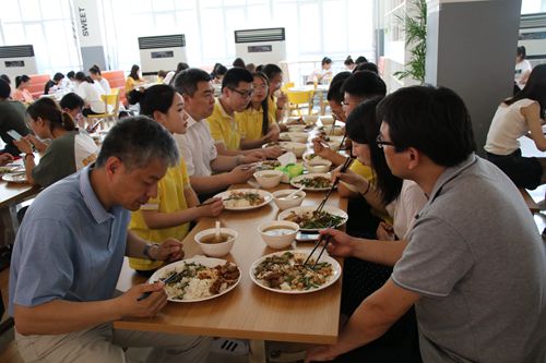 学院副院长张福仁等老师走进学生食堂与学生共进午餐