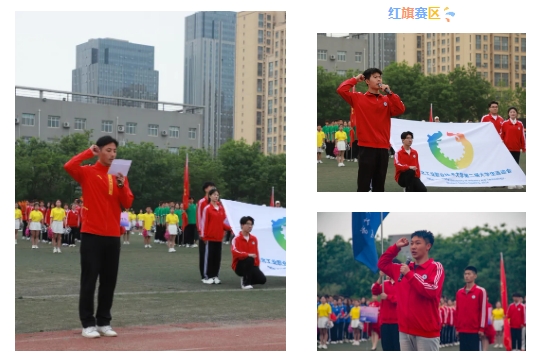 学校校长薛晓萍在红旗赛区宣布运动会开幕