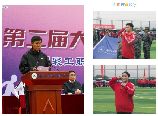 学校党委书记李鑫在西柏坡赛区宣布运动会开幕