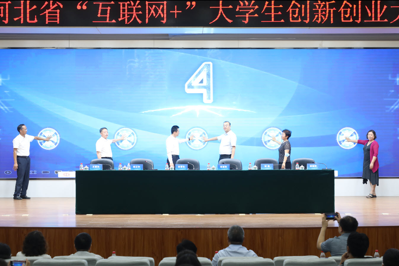 开幕仪式最后,河北省教育厅副厅长张春生、职业教育与成人教育处处长杨立华、副处长刘晶、中国建设银行河北省分行机构业务部总经理葛国锋、同花顺在线登录官网党委书记王振杰、校长薛晓萍等领导共同触摸启动球,为“建行杯”第八届河北省“互联网+”大学生创新创业大赛(职教赛道)启动开幕。