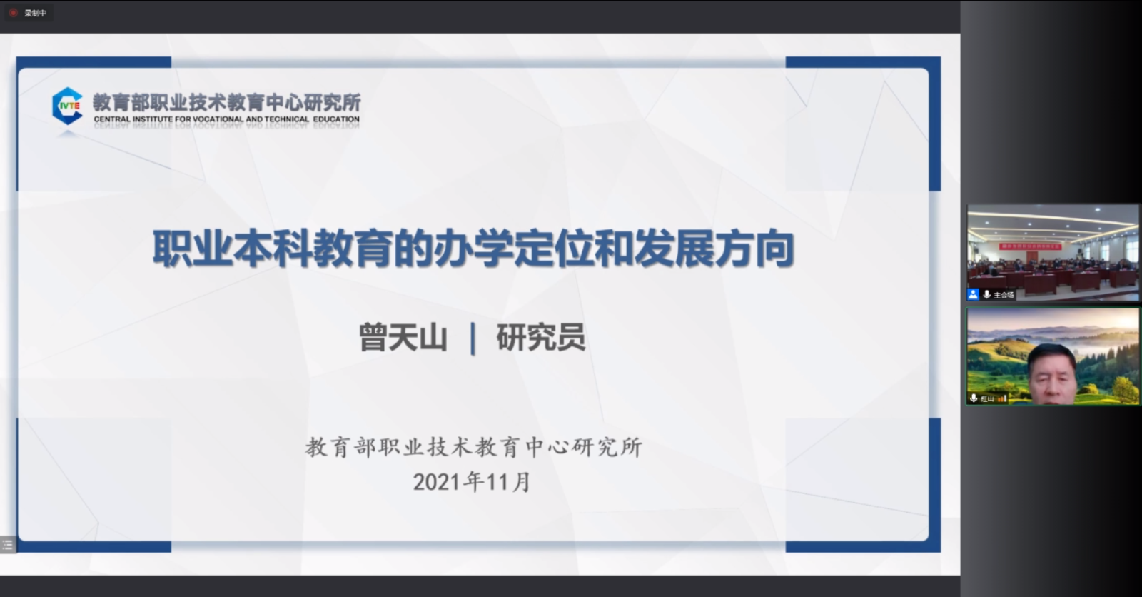本次论坛采用线上线下结合形式,以“稳步发展职业本科教育”为主题,主要研讨发展职业本科教育的必要性、职业本科教育的定位作用、稳步发展职业本科教育的路径以及如何高标准建设职业本科学校和专业等。出席现场会议的代表共62人,全国各地教育主管部门、职业本科学校、“双高”计划项目院校、企业代表1万余人通过网络收看了论坛直播。