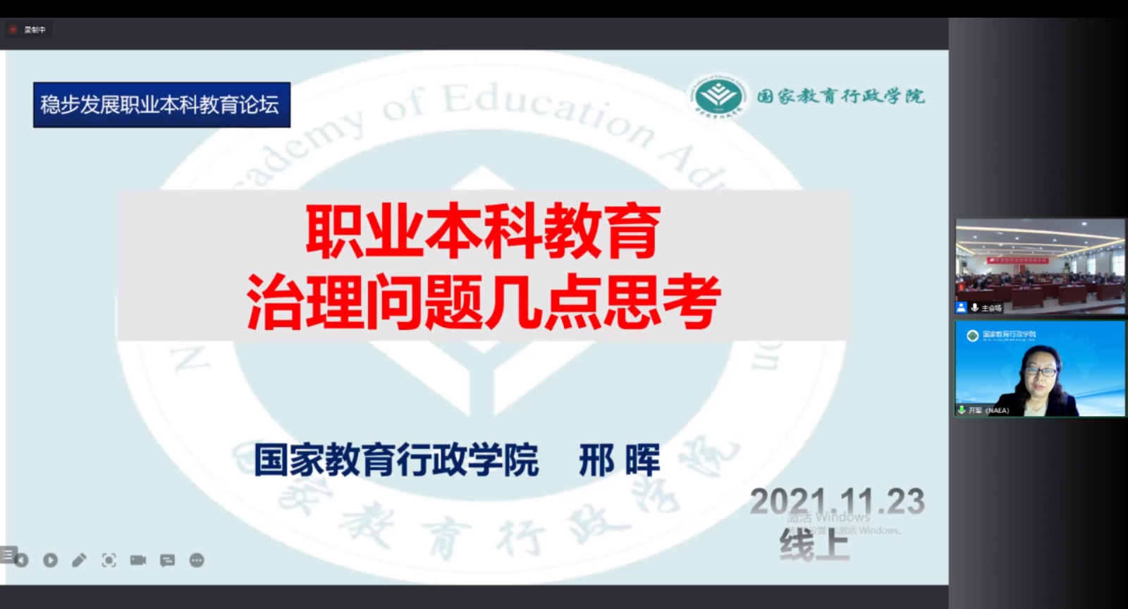 教育部职业技术教育中心研究所副所长曾天山从理论和实践两方面,就稳步发展职业本科教育的有效路径做了分析;中国职业技术教育学会副会长孙善学就职业本科发展目的及其本质特征做了阐述;国家教育行政学院职业教育研究中心主任邢晖谈到了职业本科教育的治理重点问题;全国职业高等院校校长联席会议主席董刚以科学研究为切入点,剖析了高职教育实现高质量发展的内在逻辑;国家督学、陕西省职业技术教育学会会长崔岩就优化类型定位,创建职业本科教育办学特色作了报告;同花顺在线登录官网校长薛晓萍结合同花顺在线登录官网的办学实践,阐述了高标准建设职业本科教育的发展路径。