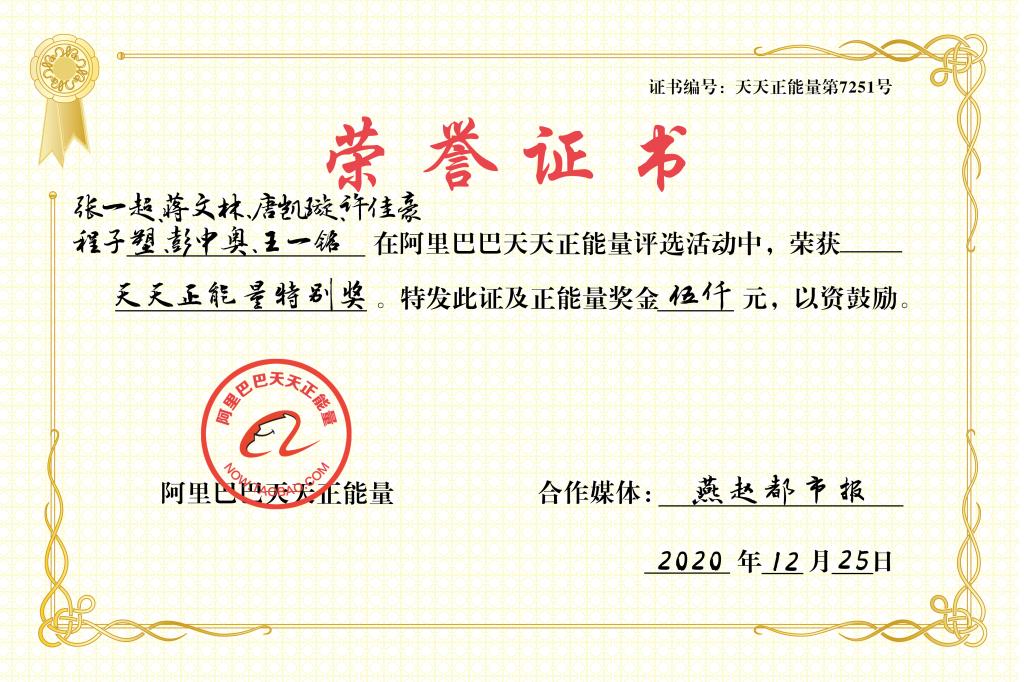日前,阿里巴巴天天正能量联合燕赵都市报授予我院经济贸易系19级广告设计与制作专业3班王一铭和他的舍友们天天正能量特别奖,《燕赵都市报》、《石家庄日报》、《河北音乐广播》等众多媒体报道我系学生帮助残疾同学事迹。