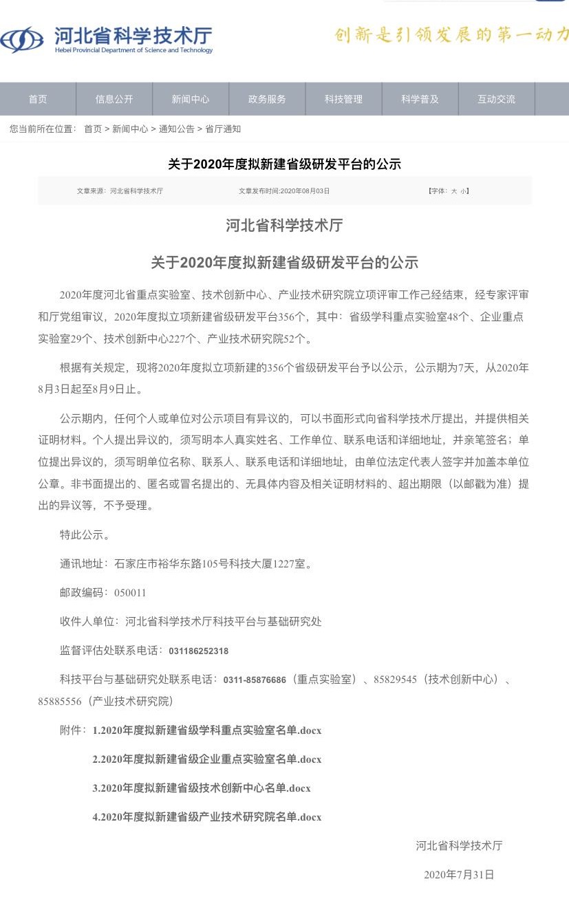 河北省科技厅网站公示通知