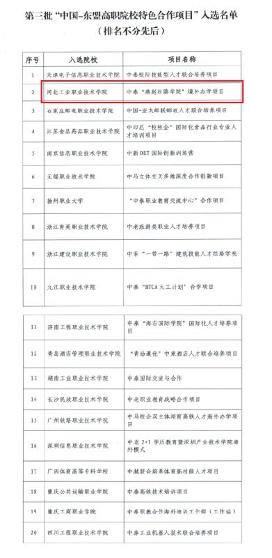 第三批“中国-东盟高职院校特色合作项目”入选名单