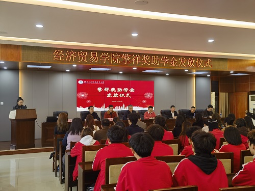 擎祥能源科技集团副总裁王润迪致辞,强调对教育的支持,鼓励学子勤学不辍,为社会贡献力量。经济贸易学院党总支书记回应致谢,勉励学生勇担时代责任。
