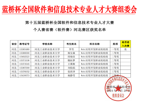 个人赛省赛(软件类)河北赛区(Web应用开发方向)获奖名单