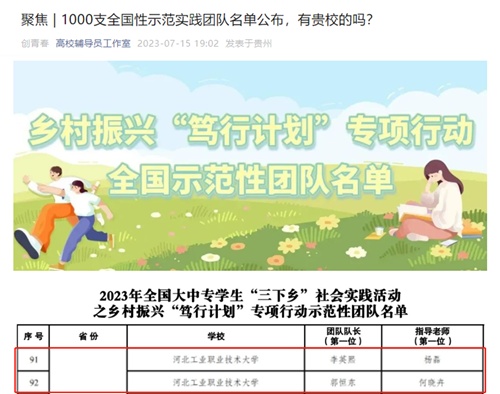 近日,2023年全国大中专学生“三下乡”社会实践活动之乡村振兴“笃行计划”专项行动全国示范性团队名单发布,同花顺在线登录官网两支团队成功入选。
