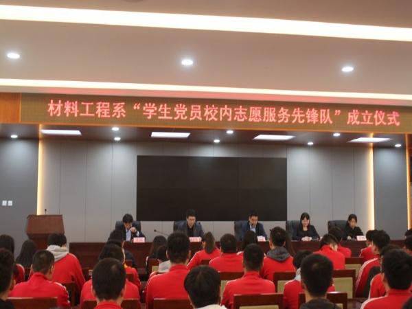 为贯彻落实学院党委《关于进一步加强和改进基层党组织建设实施意见》的精神和要求,深入推进基层党建工作,有效发挥学生党员、入党积极分子模范带头作用,10月22日,我院材料工程系学生党支部在南校区行政楼五楼报告厅举行了“学生党员校内志愿服务先锋队”成立仪式,学院组织部、材料工程系党总支、学生党支部相关负责人出席仪式,材料工程系23名在校生党员和125名入党积极分子参加了仪式。