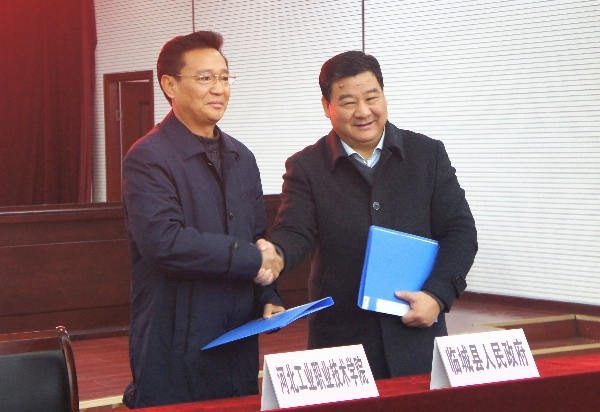 为深化成果转移转化,促进校地双赢发展,1月24日上午,学院党委书记王振杰、院长贾俊礼带队,赴临城县参加科技合作签约仪式,副院长韩提文以及科研处、相关系负责人参加。邢台市委常委、临城县委书记宋向党、县长焦朝君、常务副县长张连路、副县长张喜振、邢台市科技局、工信领导及临城县直机关负责人、骨干企业代表出席了签约仪式。签约仪式由临城县常务副县长张连路主持。