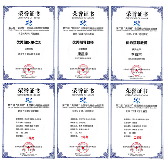 本次比赛在往届“微店设计与装修”和“微信公众号运营”模块基础上,新增“企业移动商务运营”模块,形成从业务定位、选品、采购到营销、支付再到客服、物流的完整真实的移动互联网商业闭环。经过激励的角逐,我院“你我及他”代表队荣获一等奖及最佳创新奖,两支代表队荣获二等奖,我院教师李京京、康星宇荣获优秀指导教师奖,我院荣获优秀组织奖。