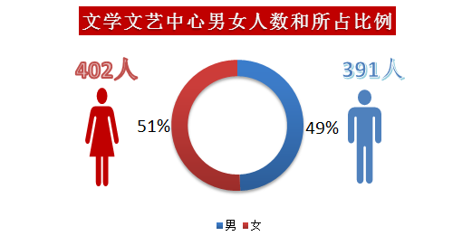 社团四个中心中,体育健身中心男女比例相差较为悬殊,有933名男生加入体育健身中心,占据比例为73%,女生比例仅为27%,说明男生对体育运动更感兴趣。