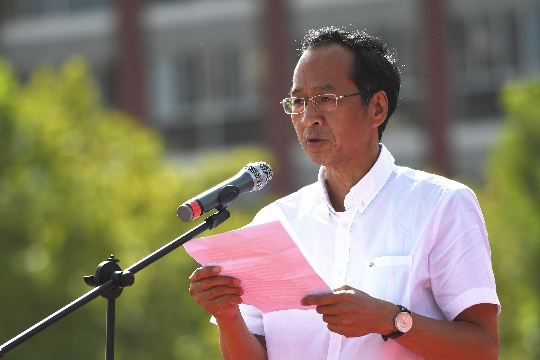 在开学典礼仪式上,教师代表和新生代表分别发言,一句句嘱托充满了老师的关怀和期盼,一声声应承传达了学子的感恩与承诺。学院党委书记王振杰发表了热情洋溢的讲话,他代表学院以及全体师生员工,向全体新生表示衷心的祝贺和热烈的欢迎!向承担本次军训任务的钢铁连全体成员表示由衷的敬意和感谢!王书记对全体新生提出了以下希望,一要明确方向,做好规划。要开拓视野、大胆尝试,敢于把自己的人生目标定位到成才的坐标之上,并为之不懈努力。二要锐意进取,学会学习,要用自身的技能来谋得职业、赢得社会的肯定,创造自身的发展。三要铸造人格,知行合一,希望大家在未来日子里,全面提升自己的综合素质。王书记鼓励全体新生坚持理想和梦想,认真勤勉学习,脚踏实地工作,争取早日实现民族复兴的中国梦。