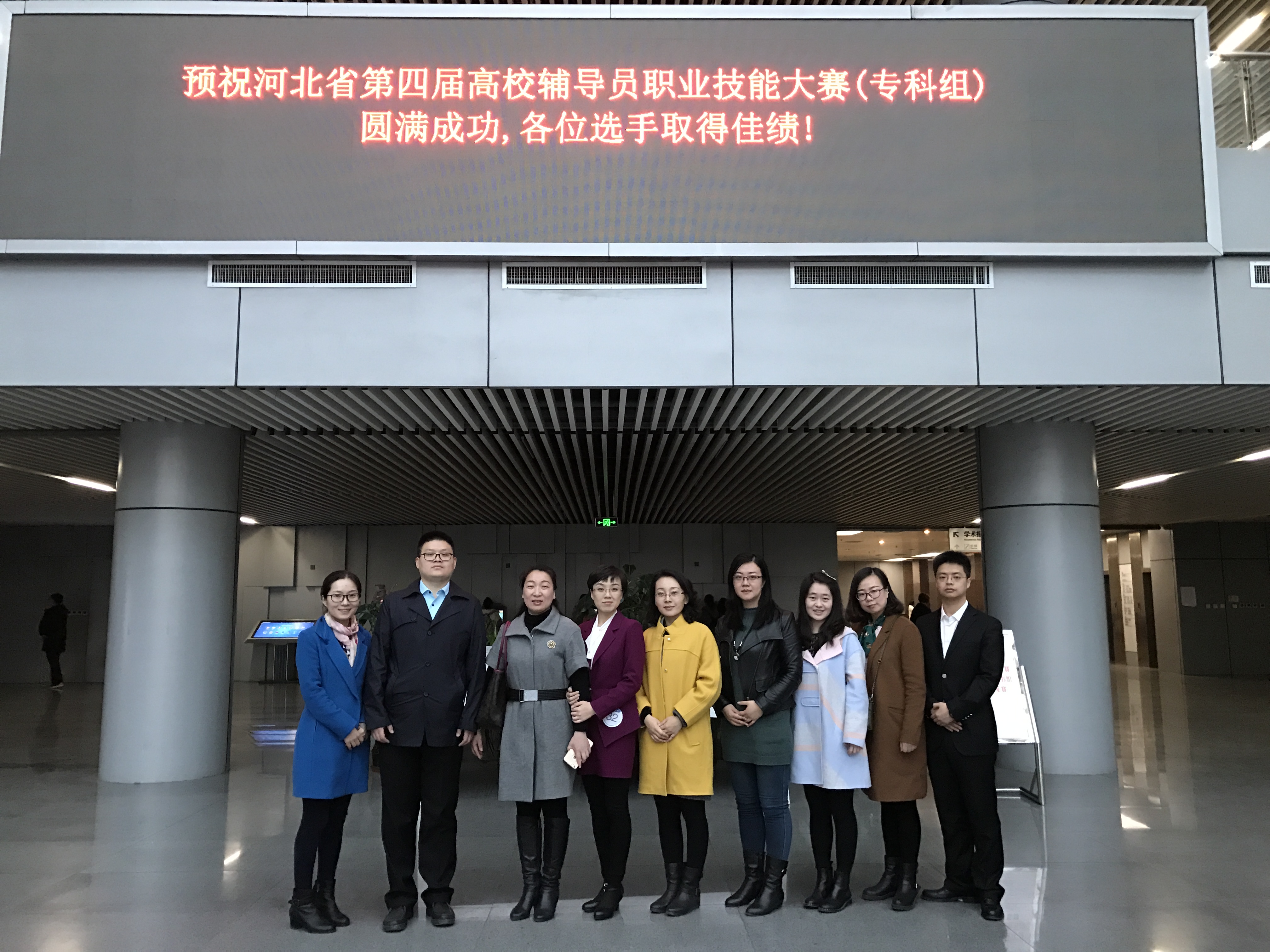 近日,由中共河北省委教育工委、河北省教育厅主办的河北省第四届高校辅导员职业技能大赛(专科组)决赛在河北省教育厅落下帷幕,来自全省45所高职高专院校的135名优秀辅导员同台比拼竞技,最终学院以团体总分第一名的成绩荣获团体特等奖,雷牧野老师、蔺涛老师、刘芳琳老师凭借着扎实的理论功底和过硬的专业技能分别荣获案例分析和基础知识两项全省第一名,主体班会单项全省第二名,主题演讲单项全省第三名的优异成绩,同时,我院荣获河北省第四届辅导员职业技能大赛优秀组织奖。