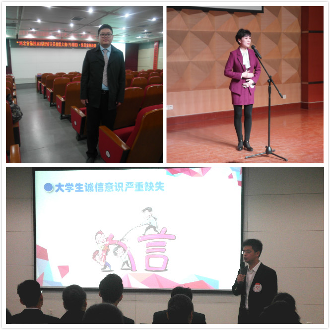 河北省高校辅导员职业技能大赛是河北省高校辅导员系统的最高级别赛事。大赛旨在深入贯彻党中央的教育文件精神,是提高辅导员理论知识水平和工作能力,增强辅导员的荣誉感和自信心的重要举措。通过班情熟知、基础知识,主题班会,案例分析,主题演讲等环节,综合考察了辅导员对思想政治教育,教育学,心理学等学科的掌握和应用,对问题的发现、分析、解决能力,对相关政策的理解与实施以及辅导员的逻辑思维能力和讲授能力。我院可以在全省高职高专院校中力拔头筹,充分体现了学院“以学生为本”的育人理念以及学院辅导员在队伍职业化、专业化建设中取得的成果,学院大力推进内涵建设效果显著。