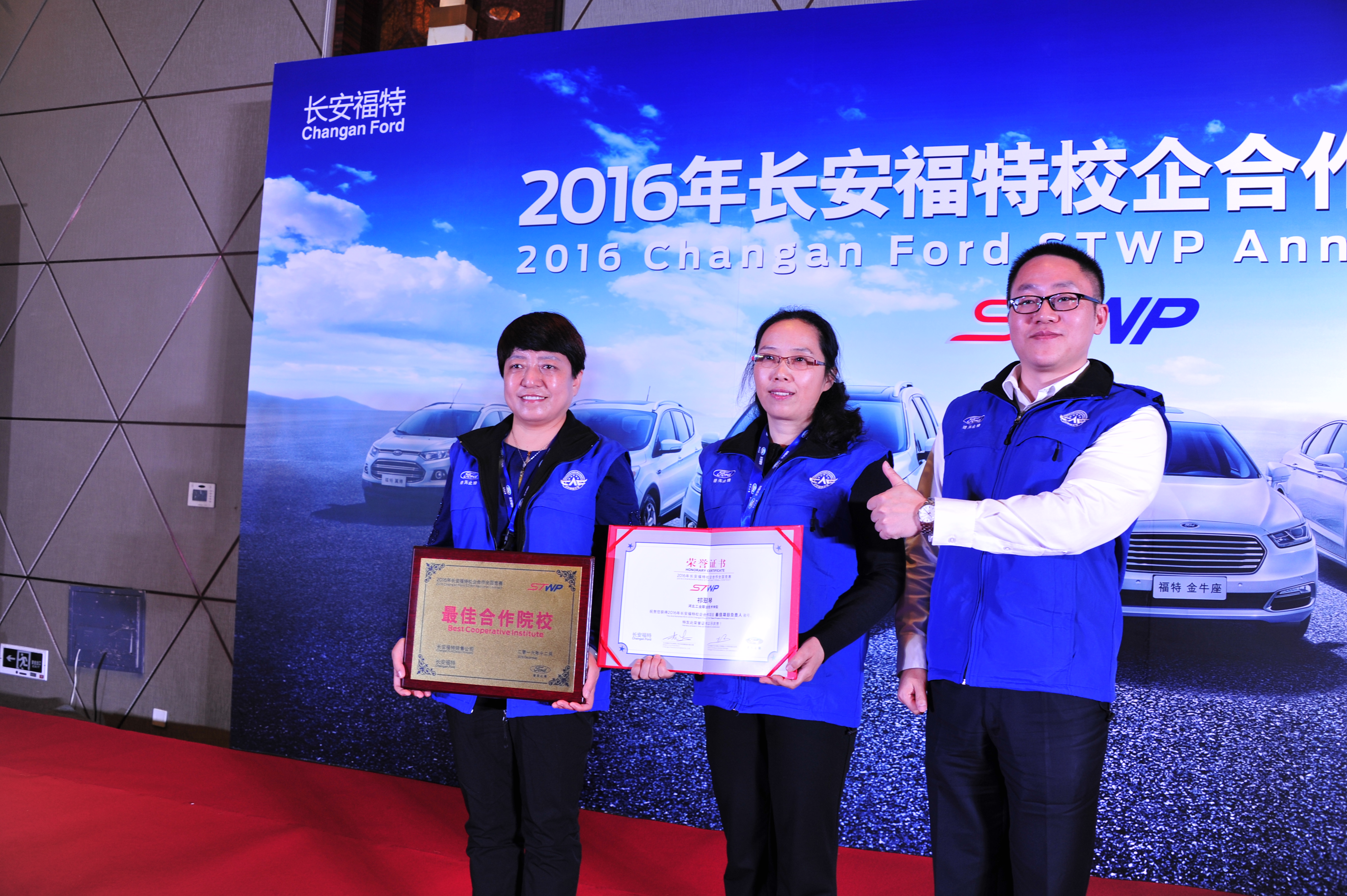 12月2日,2016年长安福特校企合作项目年会在石家庄召开。会上,学院从长安福特23所合作院校中脱颖而出,荣获2016年长安福特校企合作最佳合作院校奖。