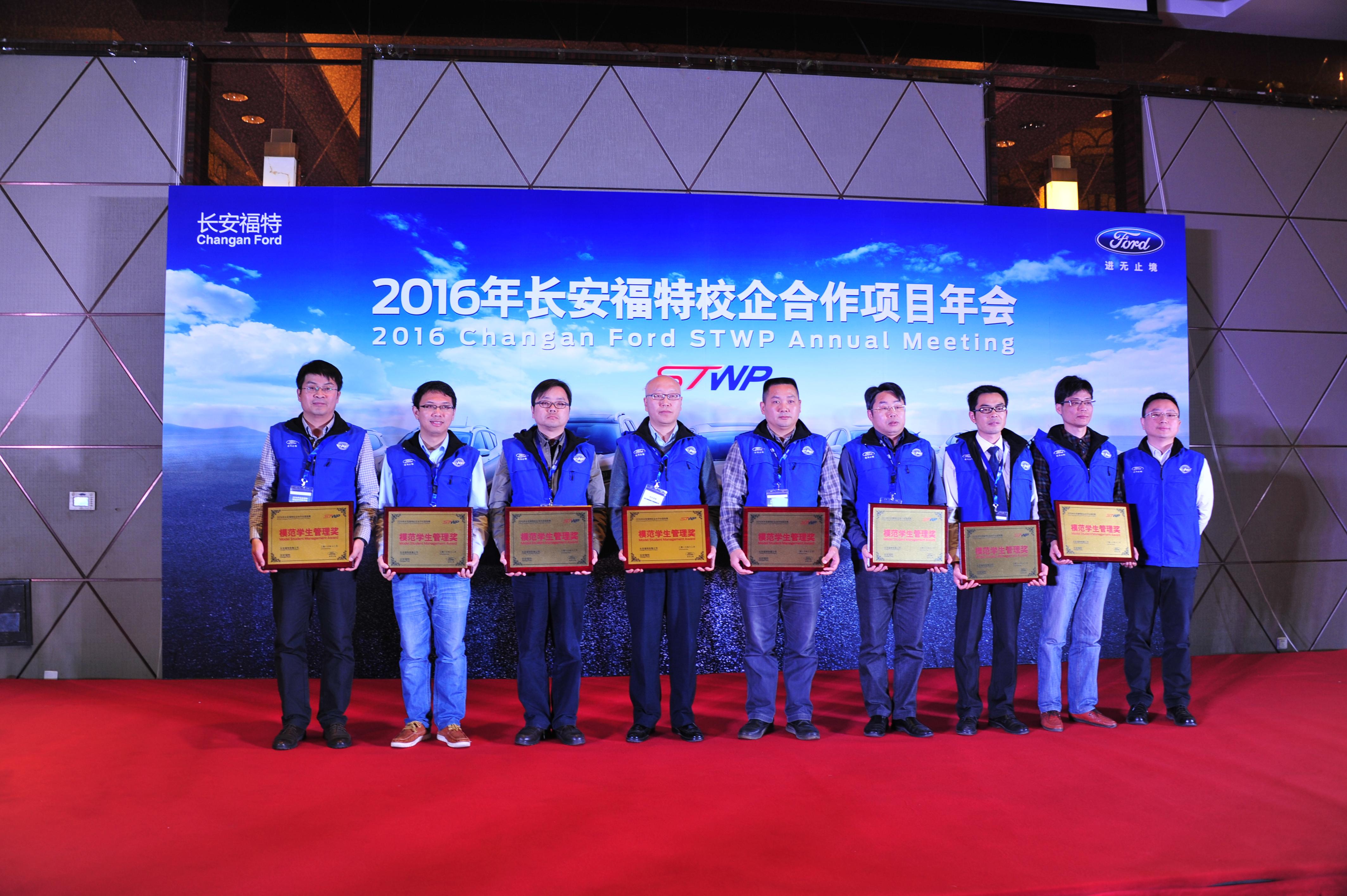 此次年会上,我学院屡获殊荣满载而归。在“2016年长安福特校企合作全国竞赛”中,我院取得全国第一的优秀成绩,并荣获2016年长安福特校企合作项目“最佳合作院校”、“模范教学质量奖”、“模范学生管理奖”称号,祁翠琴老师获“最佳项目负责人”称号,段永彬老师获“模范定向班教师”称号,闫炳强老师获“优秀定向班教师”称号,我院2015届长安福特定向班王鑫、靳志焕、郭红改、钤亚江、石尧、苏一鸣、段林宁、袁锋等8名学生获“优秀学生”称号。