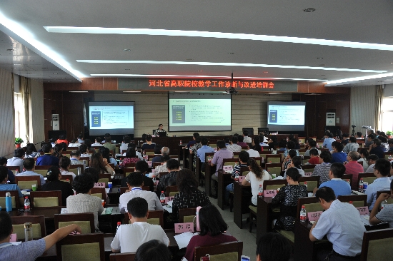 9月21日—22日河北省高职院校教学工作诊断与改进培训暨教学管理干部教育信息化培训会成功在我院召开。会议由河北省教育厅职业教育与成人教育处刘晏昇处长主持。河北省高职院校主管教学校长、教务处长、质量办主任等近200人参加了会议。