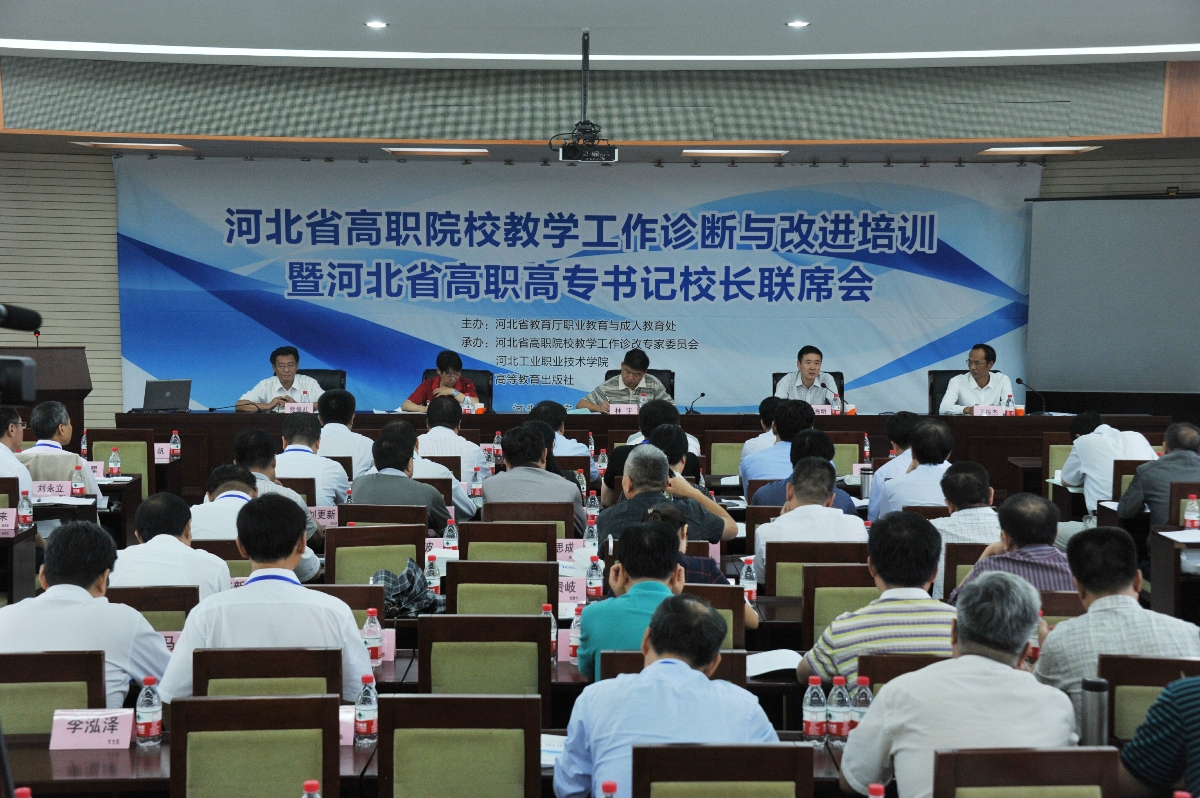 为全面贯彻落实教育部关于建立职业院校教学工作诊断与改进制度文件精神,进一步推动河北省高等职业院校建立常态化自主保证人才培养质量机制,引导和促进高等职业院校不断完善内部质量保证体系建设,2016年9月18日—19日,河北省高职院校教学工作诊断与改进培训暨书记校长联席会议成功在我院召开。