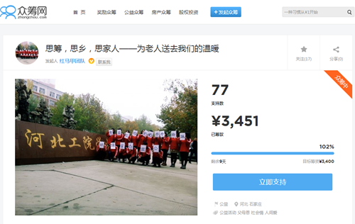 思筹,思乡,思家人,为老人送去我们的温暖——我院学生圆满完成公益众筹实践项目