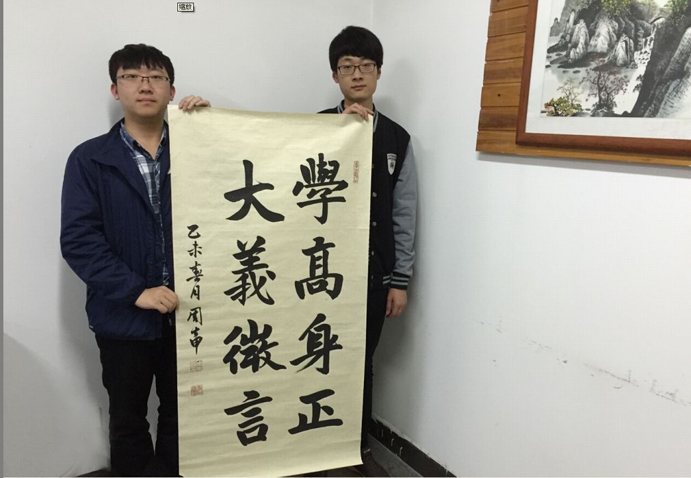 周士甲老师还为同学们带来了几幅书法作品、现场展示、讲解,博得了同学们对艺术的无限神往。零距离接触艺术家、接触艺术品,更让同学们在书法的艺术中接受着传统文化的洗礼。最后,周老师还将精心创作的书法作品赠与建工系全体师生,激励他们发扬国学经典,传承中华文化。
