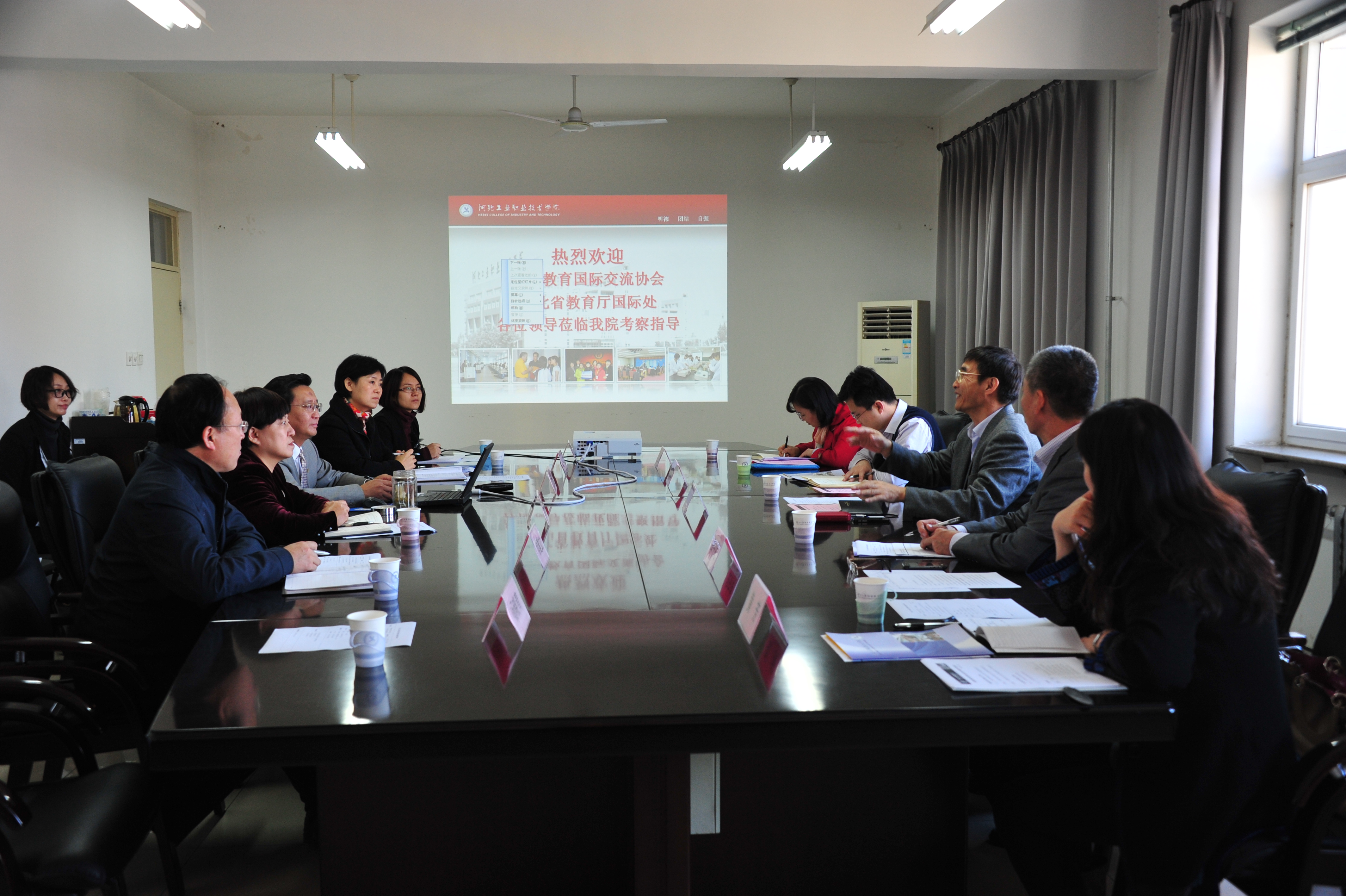 11月3日受教育部国际司委托,中国教育国际交流协会涉外办学质量保障部宗钢主任等一行三人,在河北省教育厅李守民副处长陪同下对我院合作办学情况进行调研。贾俊礼院长,付俊薇副院长、合作办学专业教师和国际交流中心参加调研座谈。