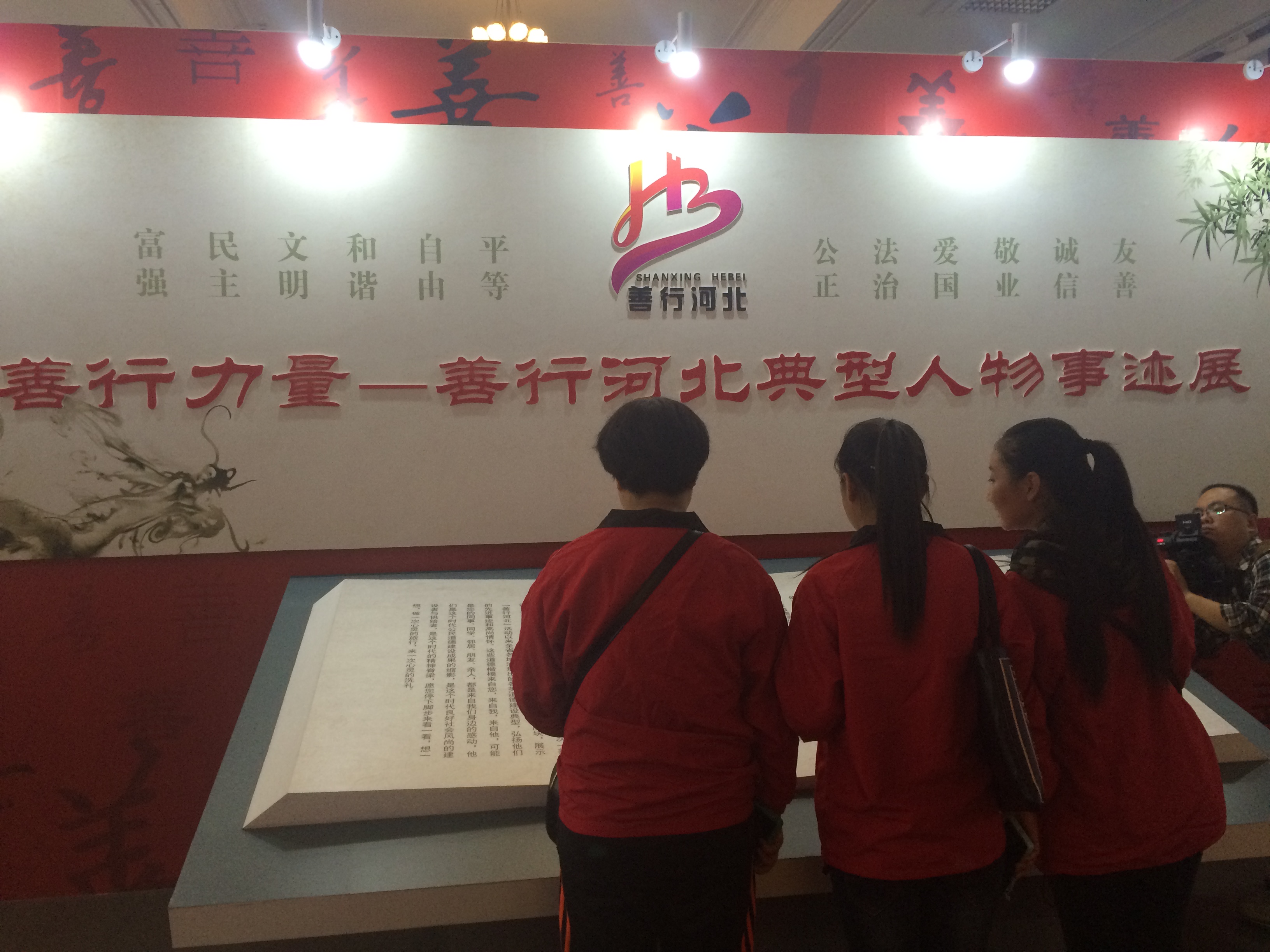 本次展览以图片、文字、视频、触屏等形式,分互助、诚信、敬业、勤俭、孝敬五个版块,图文并茂地展示了“善行河北”活动中265位代表人物的感人事迹。他们在不同的工作岗位和人生经历中因为对真善美的选择和坚持,演绎了各自的精彩人生和“最美”故事,为全社会树立了道德标杆,传递了正能量。
