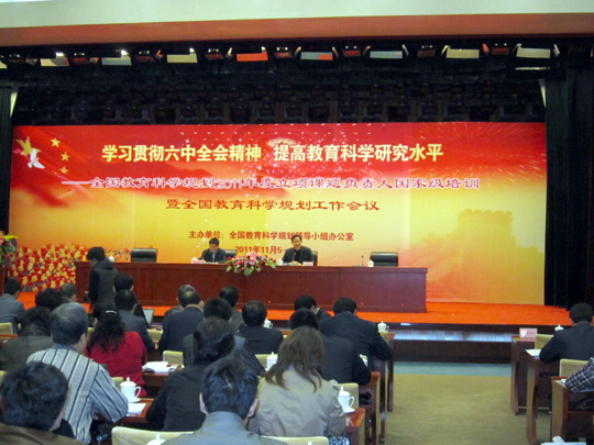 11月4日至7日,全国教育科学规划2011年度立项课题负责人国家级培训暨全国教育科学规划工作会议在北京召开。会议由全国教育科学规划课题领导小组办公室主办,主题为“学习贯彻六中全会精神,提高教育科学研究水平”。全国教育科学规划领导小组办公室主任袁振国教授主持会议。全国课题负责人或代表共计2000多人参会。我院董兆伟书记作为全国教育科学规划2011年度教育部重点课题负责人参加了会议。