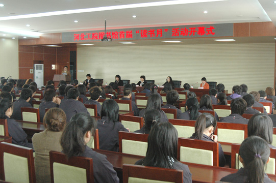 4月22日,由图书馆主办的河北工院图书馆首届“读书月”活动在南校区五楼报告厅正式开幕,付俊薇副院长出席开幕式并讲话,学生处、团委负责人、图书馆全体人员、读者协会的同学及各系学生代表参加了会议。