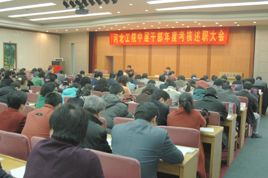 2009年3月3日,学院在北校区图书馆楼学术报告厅召开2008年度中层干部述职大会,院领导、中层干部、教职工代表及相关部门人员参加会议。会议分四个时段进行,党委副书记郝启全作动员讲话,组宣部部长付俊薇、两办主任王建刚分别主持。