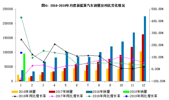 1月,新能源汽车产销分别完成9.1万辆和9.6万辆,同比分别增长113%和138%。其中,纯电动汽车产销分别完成6.7万辆和7.5万辆,同比分别增长141.1%和179.7%;插电式混合动力汽车产销分别完成2.4万辆和2.1万辆,同比分别增长59.9%和54.6%。