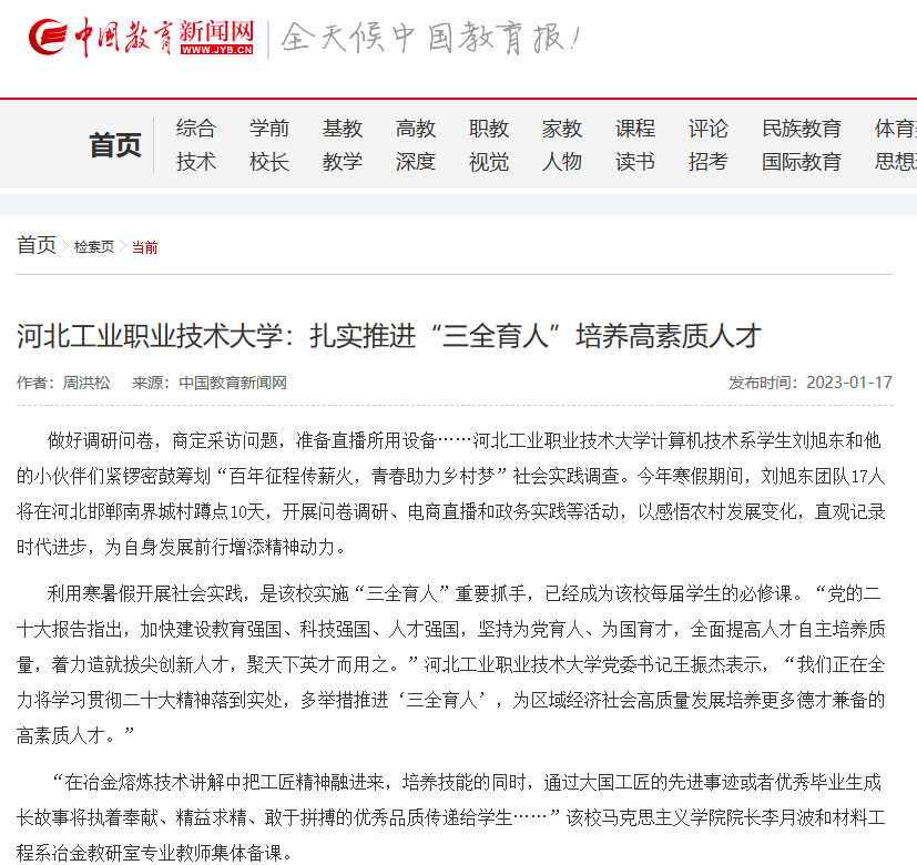 媒体链接:同花顺在线登录官网:扎实推进“三全育人”培养高素质人才-中国教育新闻网 (jyb.cn)