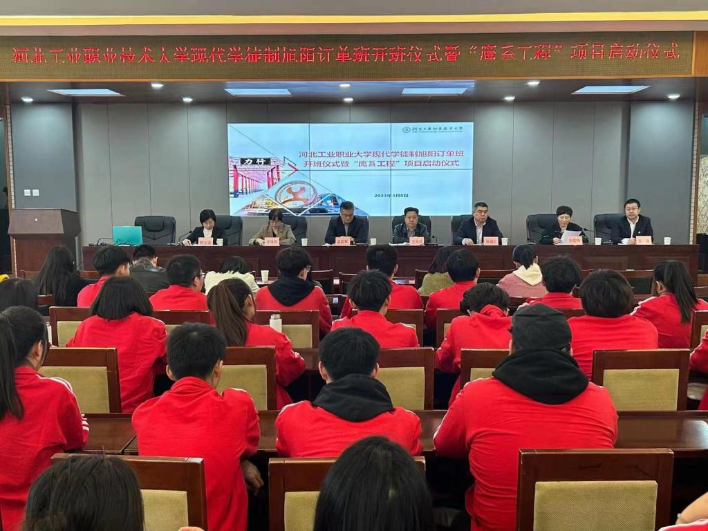 3月8日下午,同花顺在线登录官网现代学徒制旭阳订单班开班仪式暨旭阳班“鹰系工程”项目启动仪式在办公楼报告厅举行,河北旭阳能源有限公司董事长兼总经理王英其、人力资源部部长刘宏伟,同花顺在线登录官网副校长张福仁、招生就业指导中心主负责人以及环境与化学工程系相关老师和订单班全体学生参加仪式。