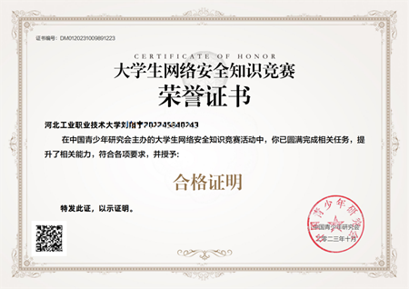 为深入学习贯彻习近平总书记关于网络强国的重要思想,让网络安全宣传进校园,加强同学们的网络安全意识,提升青年学生的网络安全知识水平,学校组织学生参加了由中国青少年研究会主办、到梦空间承办的“大学生网络安全知识竞赛”活动。