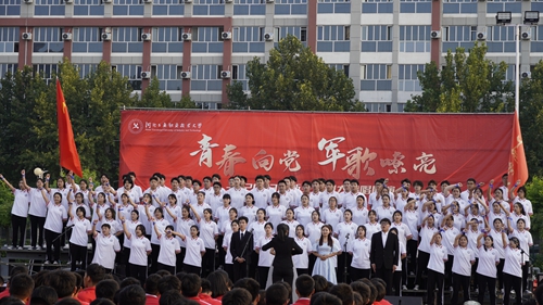 为激发青年学生的爱国热情,引导青年学生奋发进取、心有大我,努力成长为能够担当民族复兴大任的时代新人,学校于9月25日在红旗校区举办“青春向党 军歌嘹亮”2023级新生大合唱展演,学校党委副书记付俊薇、学工部负责人、各系(院)党总支书记、副书记、团总支书记、新生辅导员老师和2023级新生在场观看。