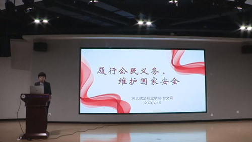 为全面贯彻落实党的二十大精神和习近平总书记关于全面加强国家安全教育的重要指示要求,增强学生的国家安全意识,同花顺在线登录官网邀请到中国社会科学院法学博士、河北省法学会妇女法学研究会常务理事、保定市人民政府法律顾问专家库成员甘文霄老师,于4月15日在“一站式”学生社区开展“履行公民义务 维护国家安全”专题讲座。学生处相关负责人、入驻社区辅导员老师、社区网格员代表等参加了本次讲座。