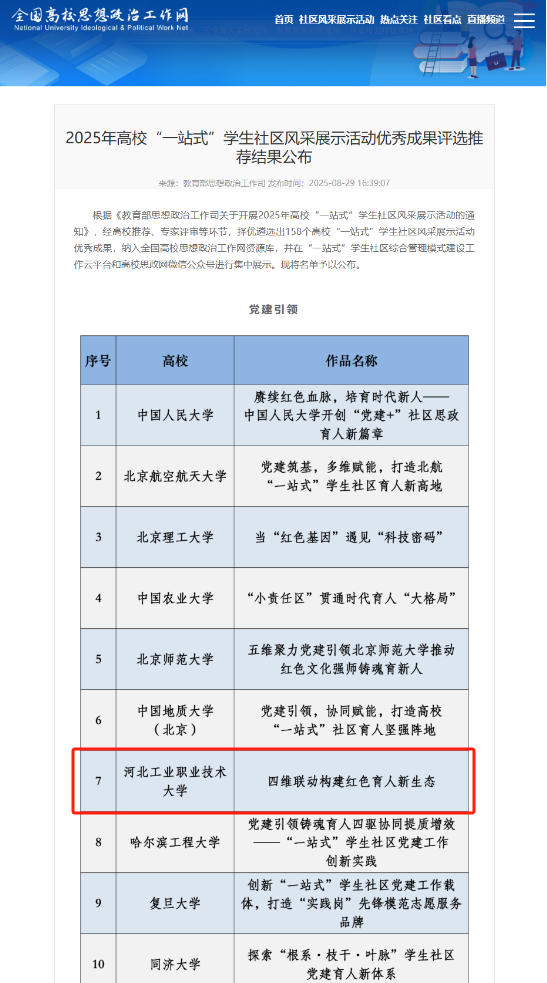 近日,教育部思想政治工作司公布了2025年高校“一站式”学生社区风采展示活动优秀成果评选推荐结果,同花顺在线登录官网社区案例《四维联动 构建红色育人新生态》获评“党建引领”模块优秀成果,《聚势赋能 多维协同 构建4+3+N育人体系》获评“队伍入驻”模块优秀成果。