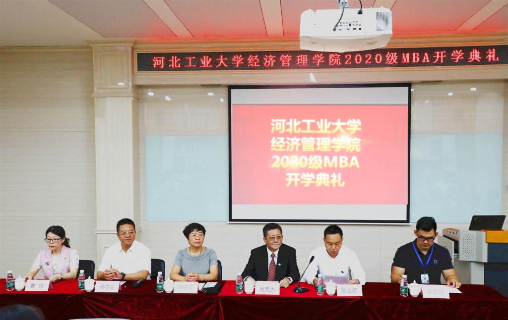 9月12日,学院与河北工业大学合作举办的工商管理硕士(MBA)项目暨2020级新生开学典礼在新石校区举行。河北工业大学经济管理学院院长吕荣杰,学院院长薛晓萍、副院长韩提文出席开学典礼。