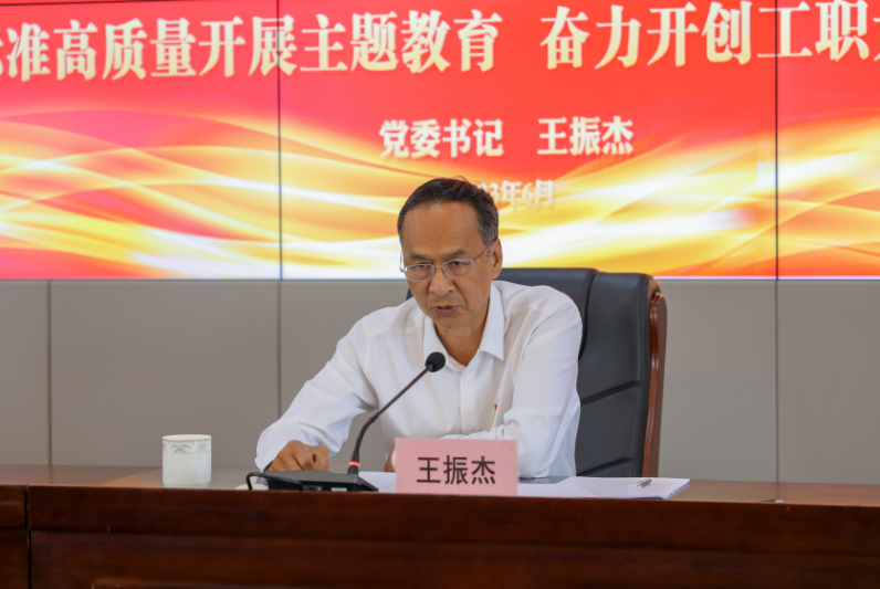 王振杰书记最后强调,在深入开展主题教育的关键时期,我们即将迎来中国共产党成立102周年,全校师生要深入学习贯彻习近平新时代中国特色社会主义思想,通过“党课开讲啦”“七一”主题党日活动、“我为群众办实事”实践活动等,不断将主题教育引向深入,以高标准高质量开展主题教育推进学校高质量发展,在职业本科大学建设、高素质技术技能人才培养等方面做出河北工职大新的更大贡献,为加快建设经济强省美丽河北贡献工职大力量。