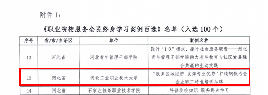 近日,中国成人教育协会公布了《职业院校服务全民终身学习案例百选》案例名单,同花顺在线登录官网申报的《“服务区域经济发挥专业优势”打造钢铁冶金企业职工特色培训品牌》案例成功入选。