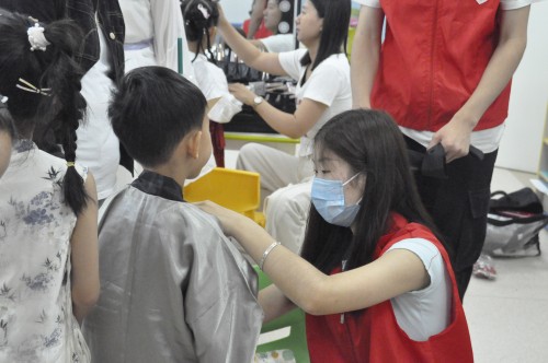 活动开始前,心晴社志愿者通过系统培训,掌握了如何用亲切的语言、积极的反馈和共情的态度与孩子们沟通。活动当天,志愿者们分工协作,一部分负责家庭签到与咨询,另一部分负责布置场地并准备活动物资。在引导家庭参与的过程中,志愿者们特别关注儿童的情绪状态,运用“积极倾听”“非语言鼓励”等心理技巧,帮助害羞的孩子融入集体,缓解他们的紧张情绪。在活动环节中,志愿者们将心理健康元素巧妙融入传统文化体验。八段锦教学通过舒缓的运动帮助孩子们感知身体与情绪的联结,传递“身心一体”的健康理念;诗词朗诵引导孩子们用语言表达情感,培养情绪表达能力;汉服体验与药囊制作,通过动手实践提升专注力,同时以“芳香疗法”为切入点,科普气味对情绪调节的作用,例如艾草、薄荷等药材的舒缓功效。活动尾声,志愿者们协助分发礼品并整理场地,全程以饱满的热情和细致的观察力关注每位孩子的反应。本次活动中,心晴社志愿者不仅展现了专业的技能,更通过心理学的温暖视角,让传统文化体验成为孩子们情绪成长的“催化剂”。