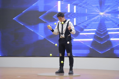 活动现场,河北省杂技团的老师结合经典案例,对河北省杂技团及当代河北杂技发展简况、杂技的起源、杂技艺术的概念及艺术特征进行了深入且细致的讲解。随后,杂技表演者身着华丽的服装,为在场师生带来了《手技》《蹬伞》《女子造型》《古彩戏法》等传统杂技节目,让师生直呼“大开眼界”。在与师生亲密互动的滑稽节目《滑稽气球》中,演员走下舞台深入观众中,与同学们近距离互动,用幽默诙谐的表演引得全场笑声不断。