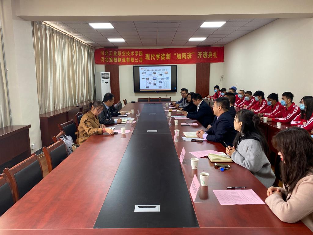 11月4日上午,我院第二届现代学徒制“旭阳班”开班典礼在1号教学楼2楼会议室成功举行。河北旭阳能源有限公司总经理尹天长、人力资源部经理刘宏伟、人力资源部经理助理李捧捧以及我院副院长韩提文及教务处、环境与化学工程系相关负责人出席了开班典礼。