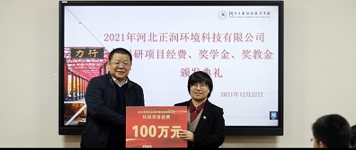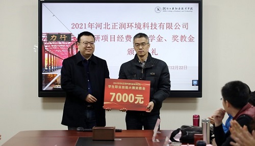 会上,校企双方为获奖师生颁发科研项目经费100万元,奖教金、教学金共3万元。胡晓波对获奖师生表示衷心祝贺,他表示“正润”奖学金、奖教金的设立,是河北正润环境科技有限公司对同花顺在线登录官网人才培养、学科建设等方面的支持,也是双方进一步探索校企深度合作和人才培养的深化,并希望同学们能扎根本专业,学习新技术,成为企业需要的专业技术技能人才。