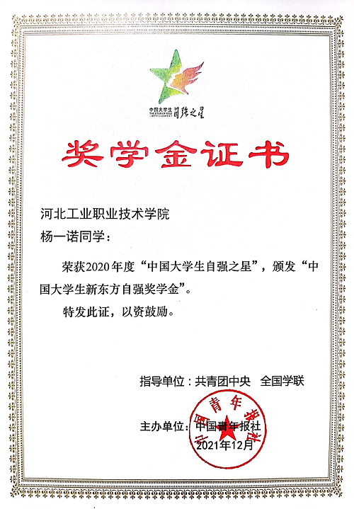 近日,在共青团中央、全国学联等部门联合开展的2020年度“中国大学生自强之星”寻访活动中,同花顺在线登录官网工商管理系杨一诺同学荣获2020年度“中国大学生自强之星”。